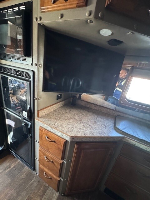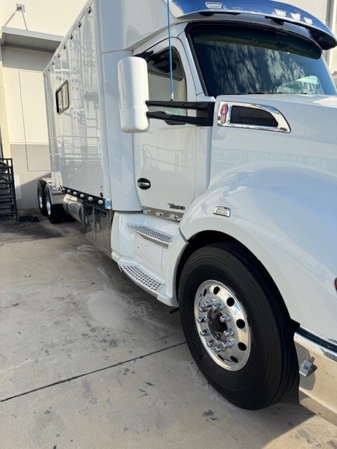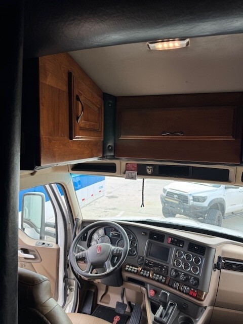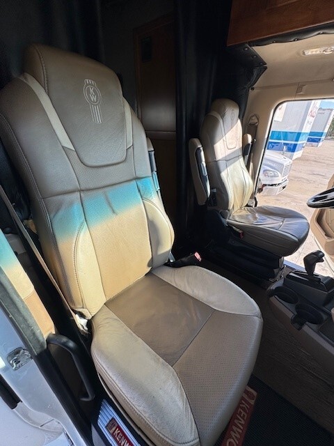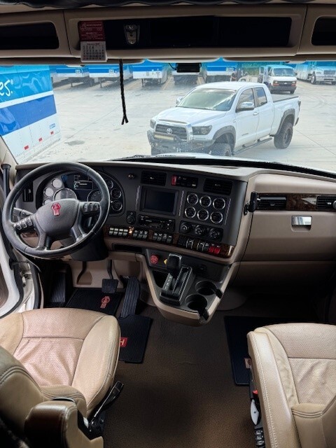 Upgraded Sleeper Options Include: T680 High Cab Conversion Walk Through Boot Opening, All-Inclusive Upgraded Interior Décor Package – Havana Rum, Hardwood Dinette Bases, U Countertop Layout to PS & 36” x 15” Window, Microwave Convection Oven, Fresh Water Tank Monitor, Medicine Cabinet with Mirror and Adj. Shelf, Mirror Behind Countertop Wall, Two Burner Cooktop, Roof Vent With Wireless Remote, Hardwood Trim To Roof Vent, 6-½” Stereo Speakers, Upgrade To 32” Wide Screen LED HD TV, Satellite System (In Motion), Dish Network Satellite Receiver, LED Auto Lights in All Overhead Cabinets, Décor Light Mounted on Ceiling, Décor Reading Light In Main Bed Area, Dimmer Switch For Ceiling Lights, Blue LED Strip Below Countertop Lip, 3-Way Switch in Cab Tied to Counter Lights, Baseboard Heater 110 Volt, Onan 7500 Watt Quite Diesel Generator in 52” Stainless Steel Box, Onan Auto Generator Start with HVAC, Coleman Roof Air Conditioner with Ducted Air & Heat Strip, Wind Deflector, Side Fairing 14” Overall DS & PS, Stainless Steel Fairing Enclosures, 5 Bag Air Ride System, Stainless Steel Combo Box with 32” DEF Cover and 24” Tool Box, 14 Clear Lens LED Clearance Lights Top of Sleeper, Stainless Steel Below Cab Doors, 6 Clear Lens LED Clearance Lights Below Cab Doors, 2 Pairs Red LED Load Lights, 1 Pair Clear/White LED Load Lights, 5 Clear LED (1-3-1) Bus Lights, Visor with Clearance Lights on Cab Conversion, 14” x 14” Window in Shower, 36” x 15” Window with Hardwood Trim & Day/Night Shade DS…and much more!
