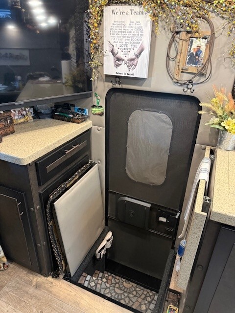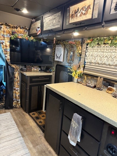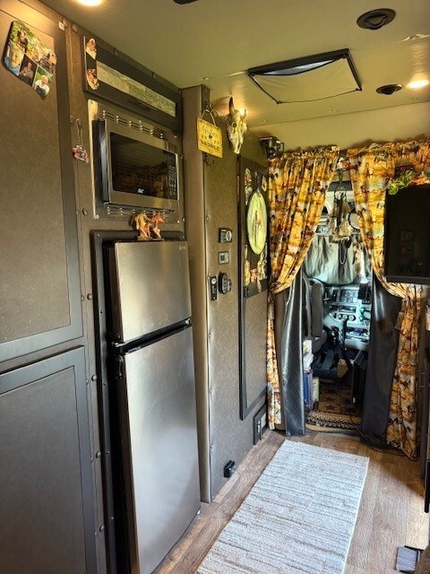 Standard Sleeper Features Include: Stainless Steel Skirt, LED Clearance Lights in Stainless Steel Skirt, Light Weight Aluminum Structure, Laminate Countertop with Seamless Front Edge & Rear Back Splash, Hardwood Door & Drawer Fronts, Under Sink Storage Cabinet with Shelf, Door Struts in Overhead Cabinets, Cabinets Lined with Noise Reduction, 2 Wardrobe Cabinets, One Piece Seamless Fiberglass Shower with Cassette Porta Potti, Premium Grade Residential Style Linoleum, LED Light Fixtures, 2 USB Receptacles, Hardwood Shower Door, Undermount Stainless Steel Sink, Decor High Rise Sink Faucet, 24" x 16" Window with Hardwood Trim & Day/Night Shade PS, Egress Window with Hardwood Trim & Day/Night Shade PS, Heater/Air Conditioner with Wall Thermostat, Roof Vent with Smoked Exterior Cover, Sound Bar System, Blu-ray, HD, TV Antenna with Booster, Household Style 7.3 Cu. Ft. Refrigerator, City Water Hookup, 30 Amp Shoreline - Marine Grade & Heavy Cord, Automatic Transfer Switch, and 2800 Watt Inverter/Charger with Remote Display